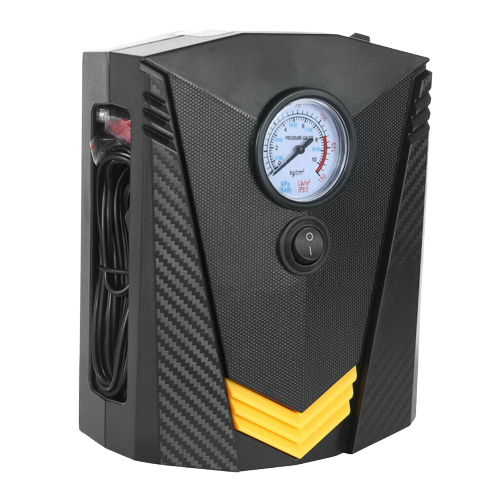 - 12V Analogue Tyre Inflator with three piece adaptor kit for inflating sport balls and small inflatables.